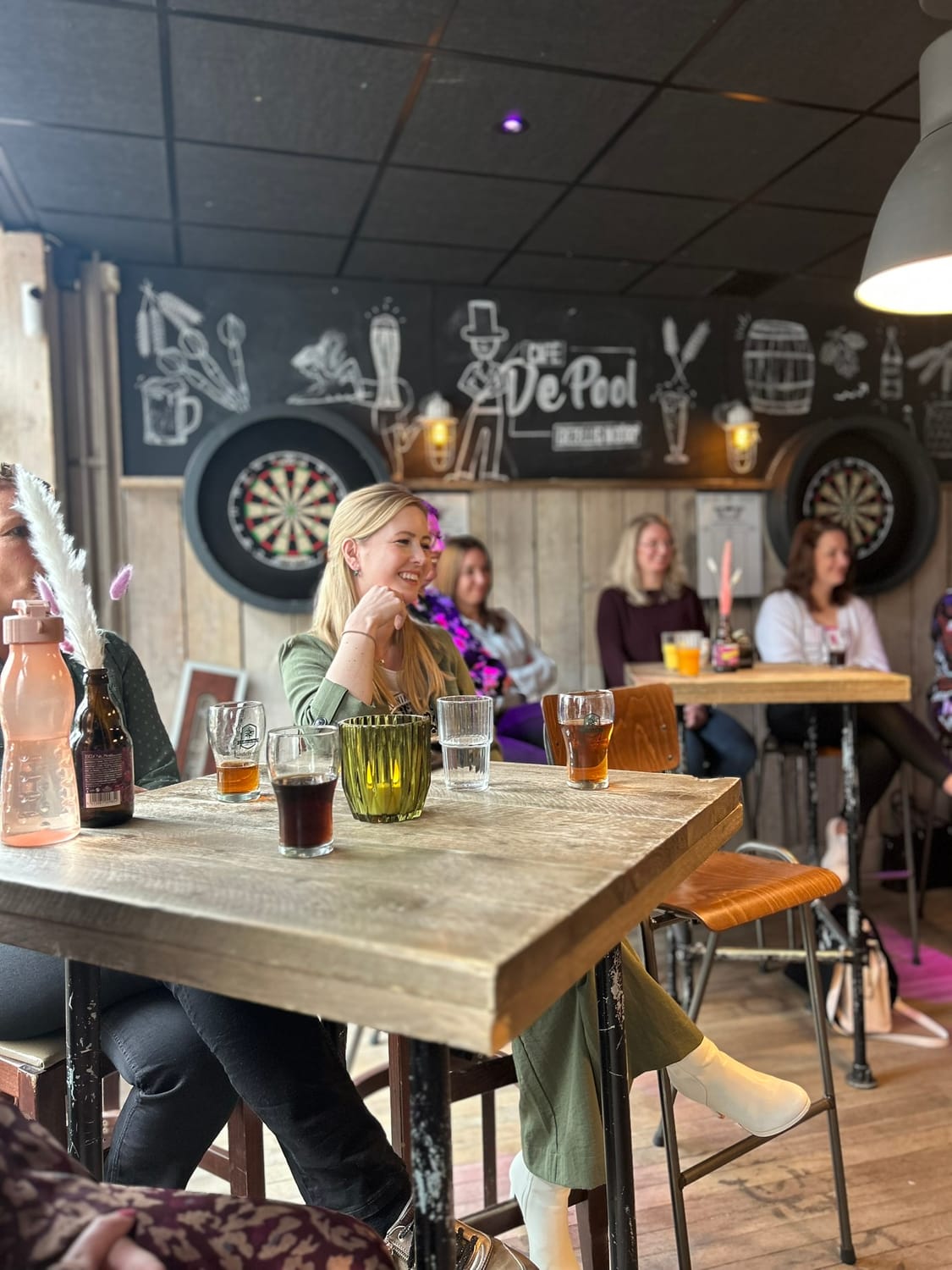 Homecoming vindt plaats in een warme, informele setting. Geen klinische zaal, maar een plek waar je je snel op je gemak voelt. De sfeer is laagdrempelig en gedragen, zodat je niet het gevoel hebt dat je “op een event” bent, maar op een plek waar je mag landen. Gewoon lekker in de kroeg. (ja hij is gesloten)